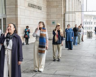 YouYou Group is a Brussels-based practicing art community devoted to the trilling sound youyou and its many inflections and extensions — a collective exploration of voice, resonance, and shared expression. With their vibrating voices, the performers of YouYou Group weave electrifying sonic fabrics. Through interplay and contagion, a continuous chain of sound emerges, filling the space and immersing the audience in an experience that is at once hypnotic, unpredictable, and deeply energizing.